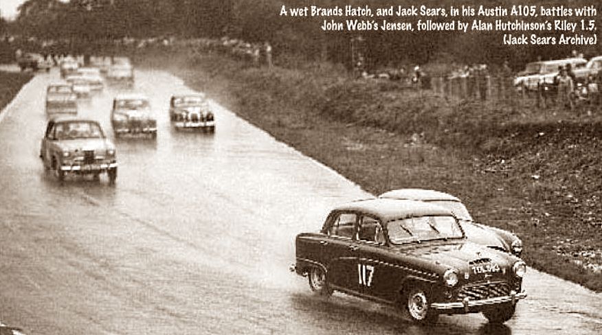 Jack [Sears] had a relatively quiet 1957 and raced his own Austin A105 in a number of saloon car events, as this was before the advent of a British Saloon Championship. More often than not, he won his Class against cars such as the Ford Zephyr, but was concerned when he was beaten at Silverstone by John Webb driving a Jensen 541 which was really more of a GT car than a saloon. In those days, if it had a roof it became a saloon.