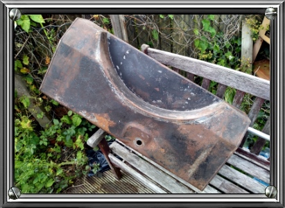 Notice the cutout to accommodate a spare wheel, and the ribs to give strength. It also has internal baffles. Yes, I did put it in a nettle patch for the photo and, yes, they do sting!